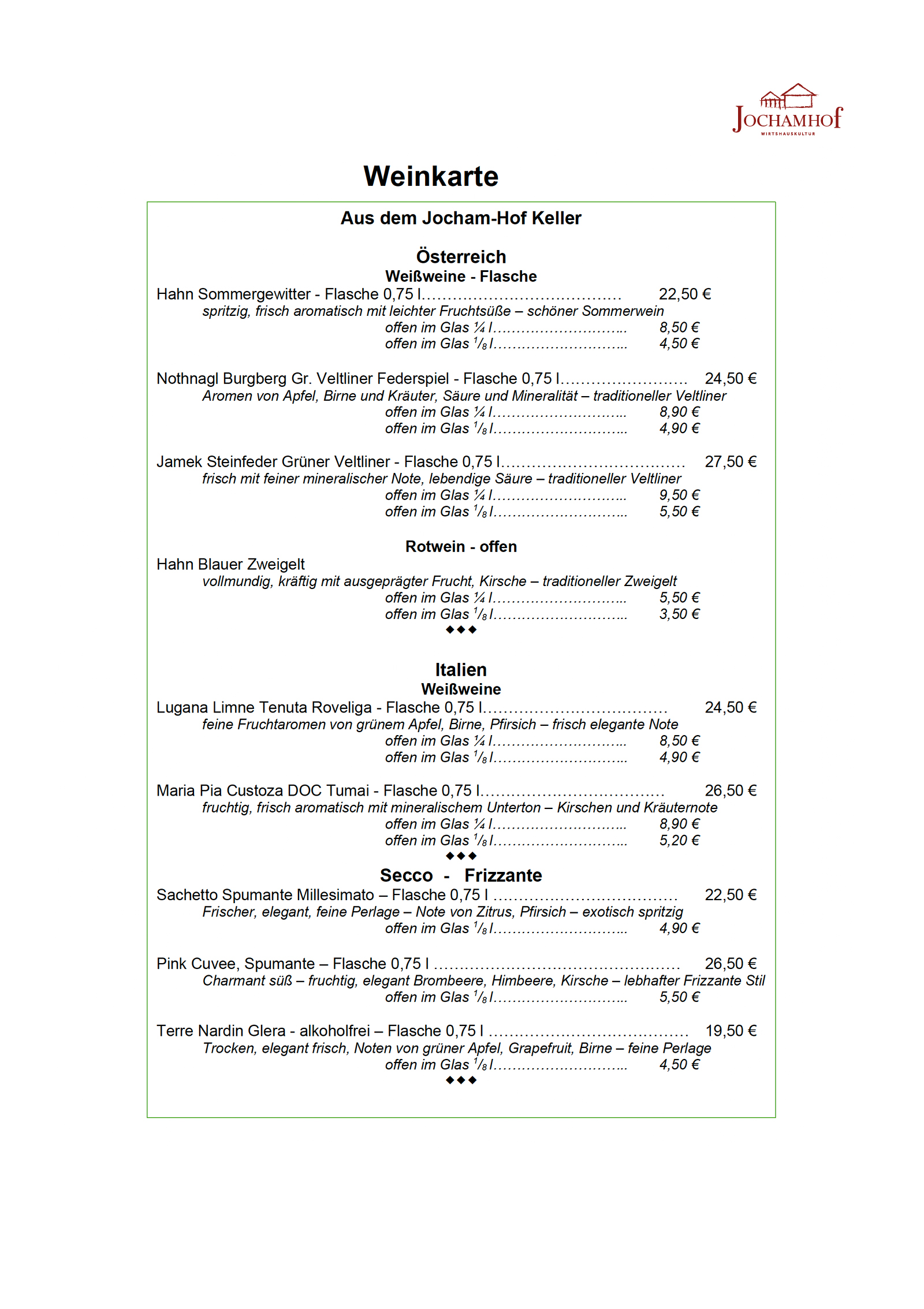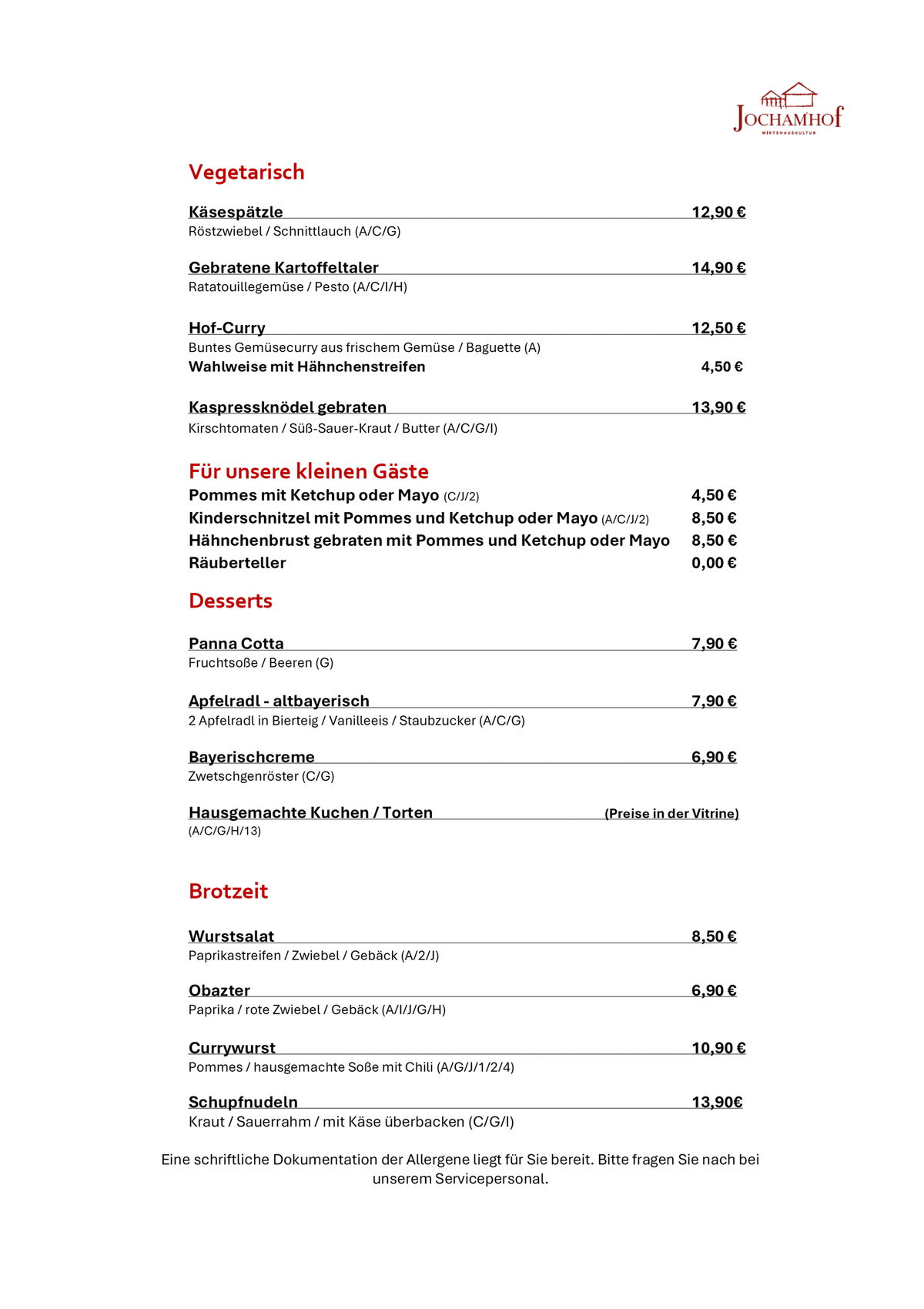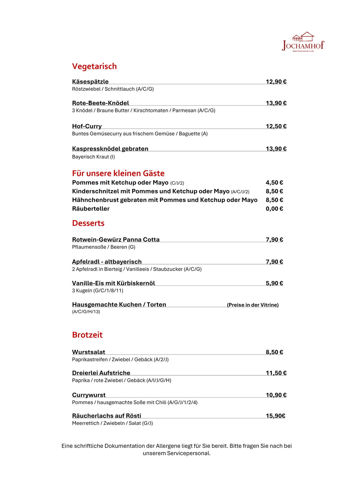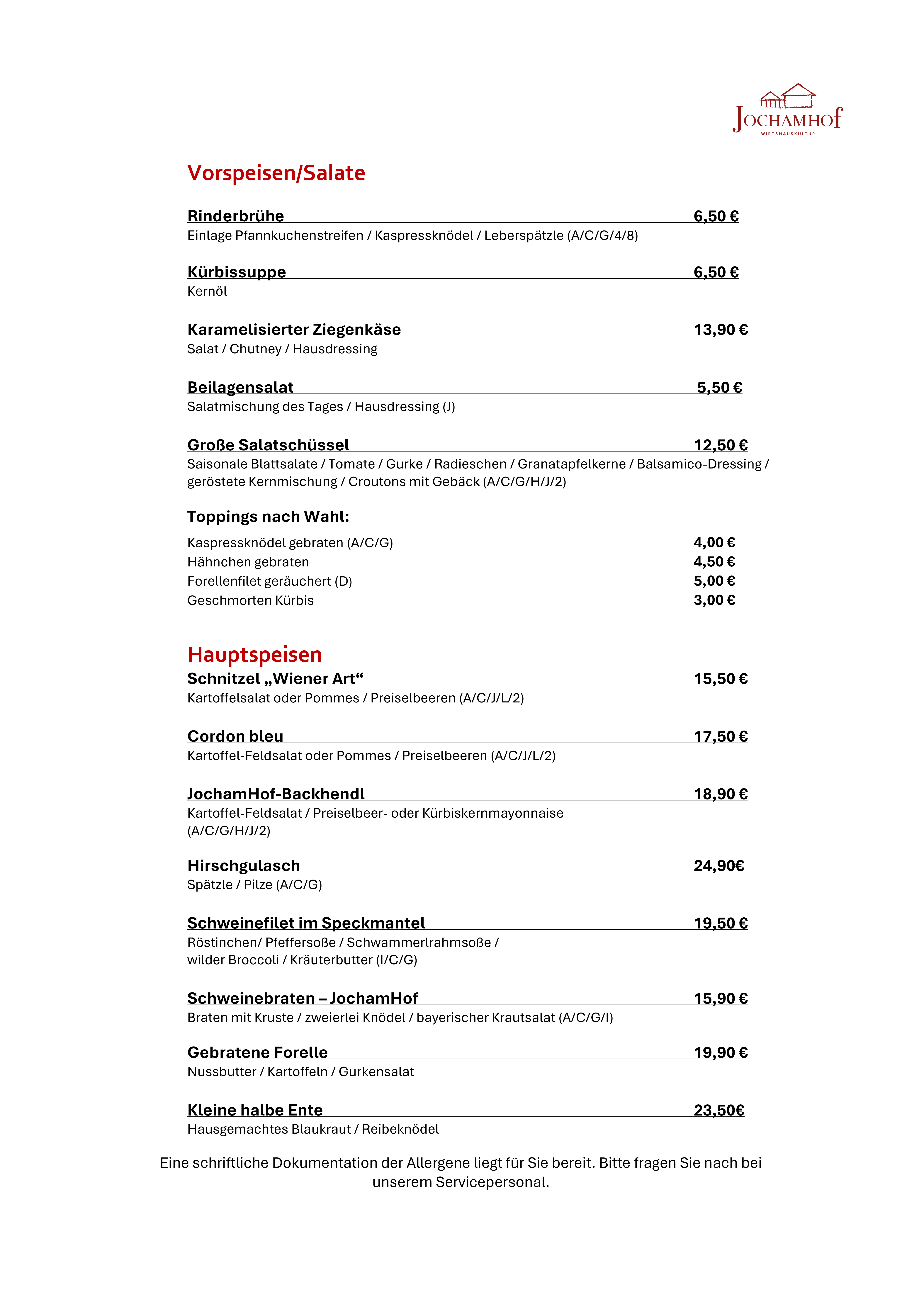 Speisekarte